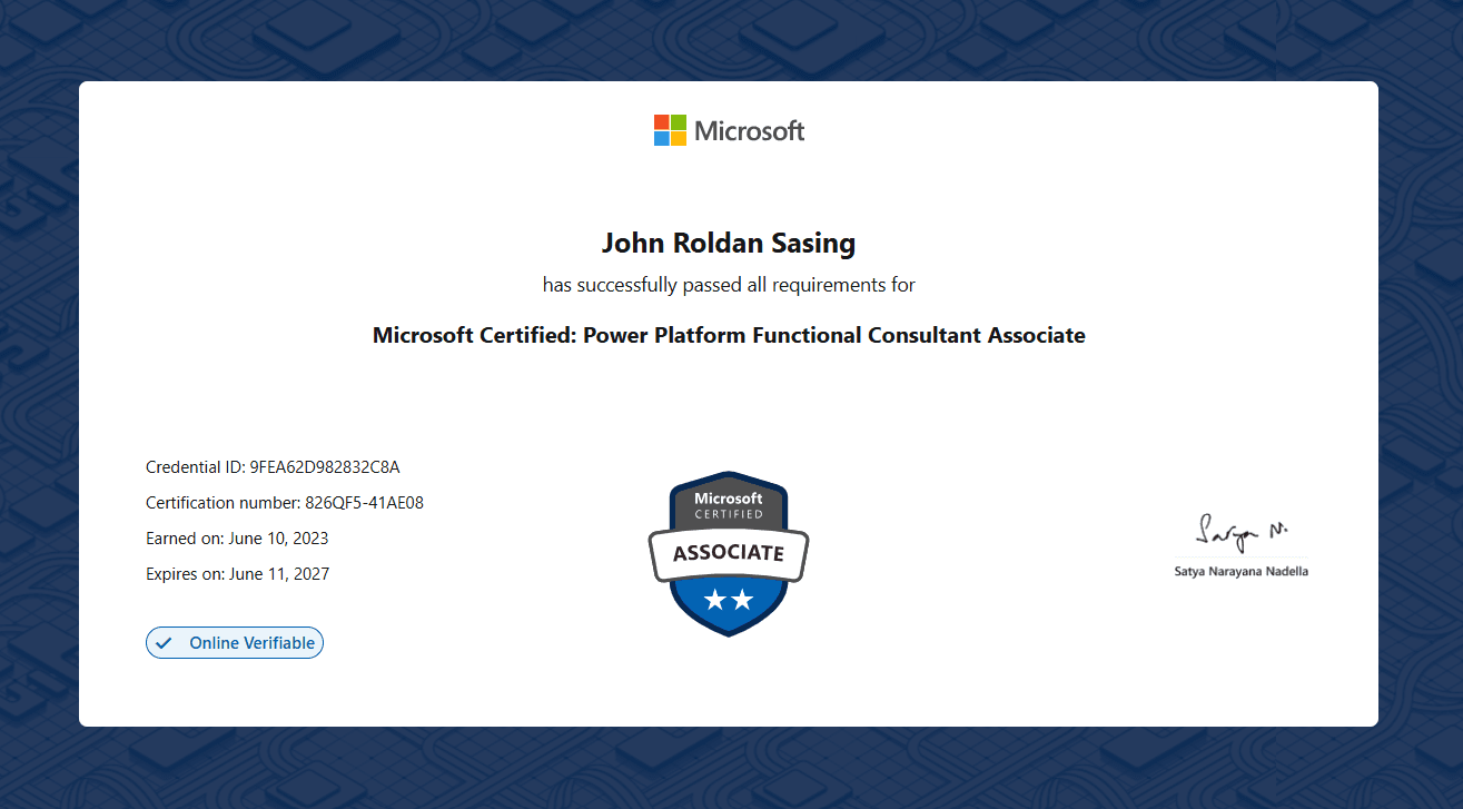 Certification for configuring and extending Power Apps, Power Automate, and Dataverse for business solutions.